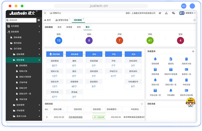 招标计划:基于招标策划拆解招标子项,实时监控计划执行偏差并推送预警,确保招标活动按期推进。