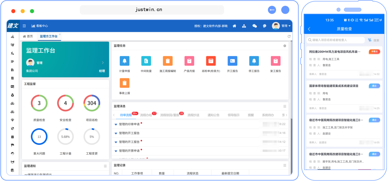 监理工作监督与支持:监理工作台助力业主授权监理全面监督现场,保障施工质效合规,且保障双方定期沟通,支持监理建言。