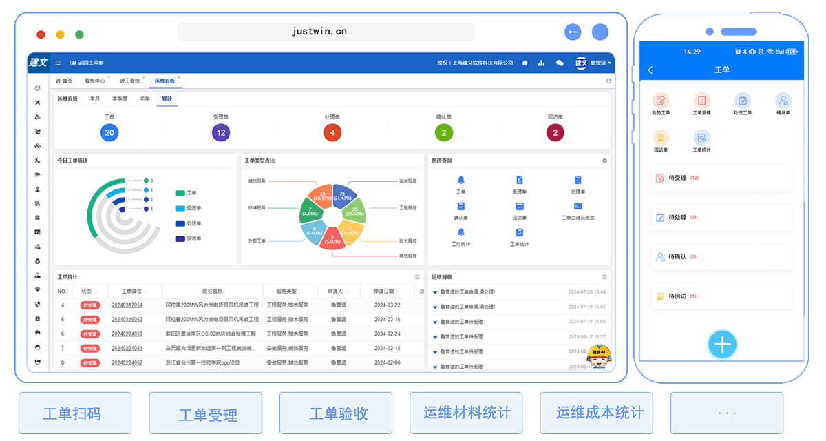 受理单(售后方): 根据工单判断所属的分部分项工程、紧急程度及维报人员专业技能,分配任务至最合适的运维人员或专业施工班组,提高处理效率与质量。