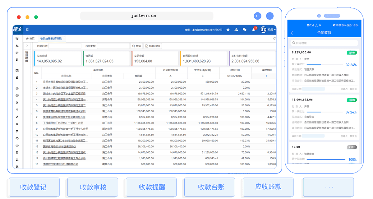 资金支付:遵循合同金额≥预结算金额≥结算金额≥支付金额的原则,实时跟踪控制付款额度,降低合同溢价风险。