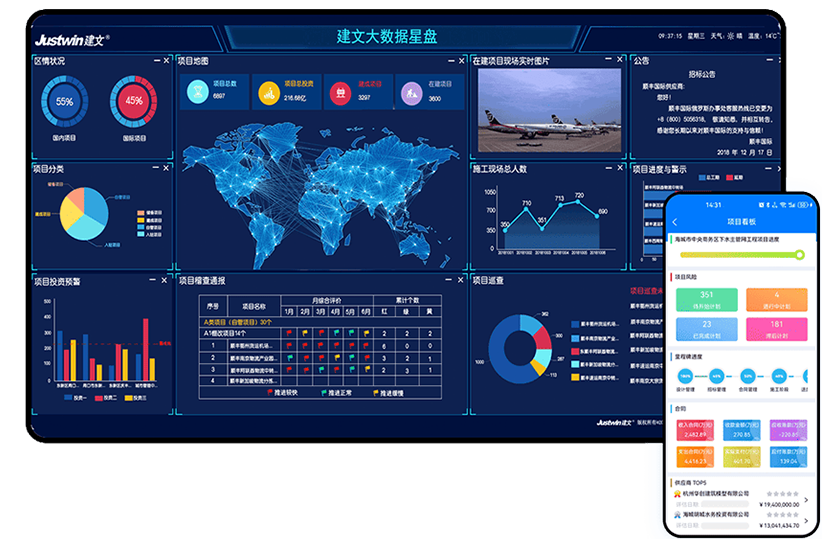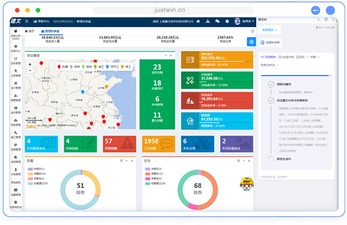 支持。建文的管理仪表盘不仅提供多维度汇总与预警,还强调穿透到明细、追本溯源与一键定位问题,用于支撑管理层的快速决策与问题闭环。