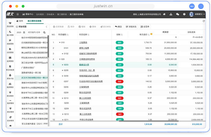 预算重分配:按“概算编码—清单项—合同”链条回写概算占用,对超额或预算外部分实施强控/特批与预警。